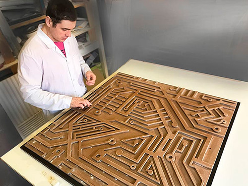 После того как эскиз и технологические вопросы утверждены, приступаем к изготовлению матрицы – фрезеровка специального материала на ЧПУ станке (для этого заранее в программе 3DMax моделируется изделие специалистом), либо вылепливается все вручную.